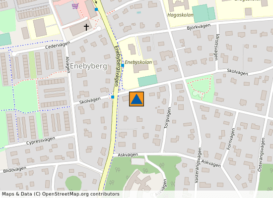 | Enebykyrkan | 300 meter bort |