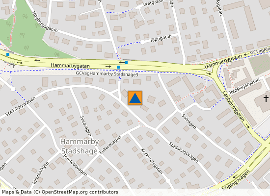 | Hammarbygatan | 101 meter bort |
